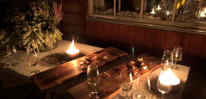 En middag i en mysig fjällstuga där värmen och ljuset kommer från de levande stearinljusen och den sprakande brasan är en upplevelse utöver det vanliga