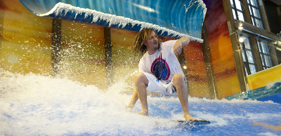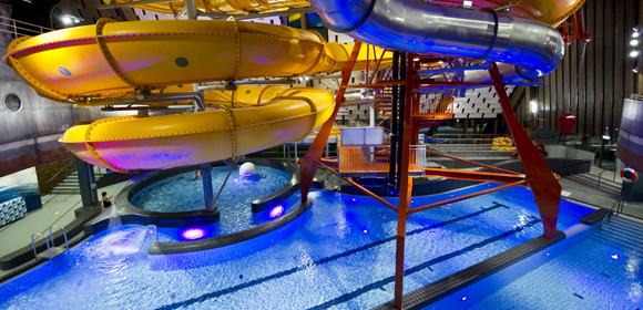 Upplevelsebadet på Experium Sälen lockar med det häftigaste som finns för vattenlek och fartfyllda äventyr. Här kan man också lära sig att surfa i Flowridern eller vad sägs att simma ut i det 37 grader varma vattnet och se snöflingorna dalar ner.