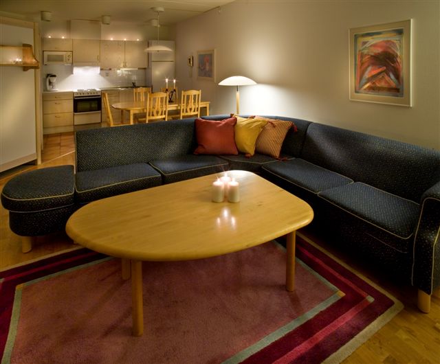 Storfjället - Lägenheterna ligger i suterräng utanför hotellet och har 6 bäddar fördelat på 2 sovrum. Ljust och fräscht med öppen planlösning. Lägenheterna har antingen balkong eller uteplats.
