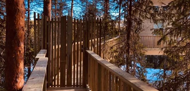 Bara en kort tur söder om Trysil by kan man prova detta unika boende. Högt upp i trädstammarna har det byggts en stuga med precis det som behövs för att bo bra alldeles intill natur och skog.