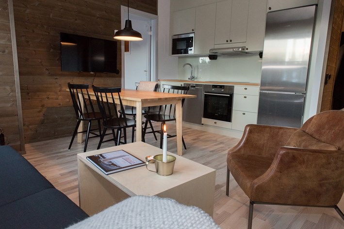 Mysigt lägenhetshotell med ski-in ski-out läge.
